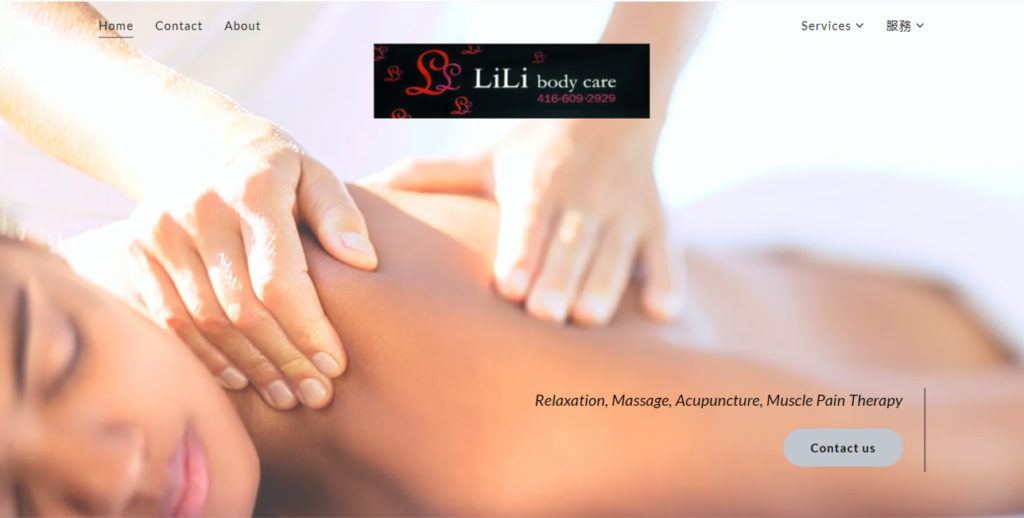 如果您想要的是按摩,那麼您來對地方了。 Lili 或她在 Lili Body Care 的一位註冊按摩治療師將幫助評估適合您的按摩療法——使用適當的壓力量和類型來緩解緊張、肌肉和關節酸痛,或幫助受傷恢復。 在當今忙碌而緊張的生活方式中,體驗治療性按摩的積極效果比以往任何時候都更加重要。 壓力和緊張的肌肉會導致潛在的長期傷害